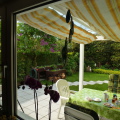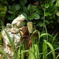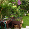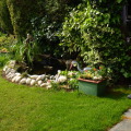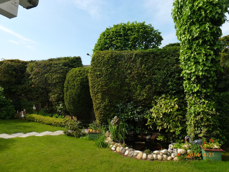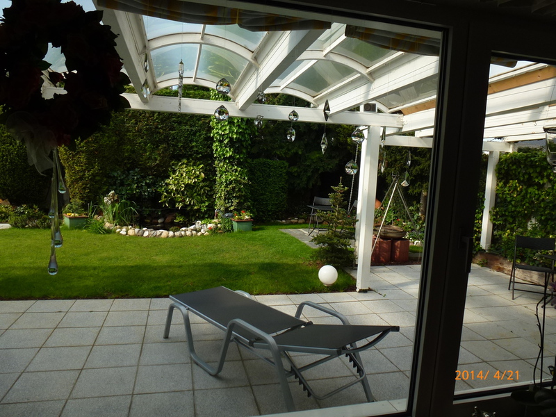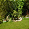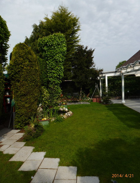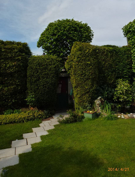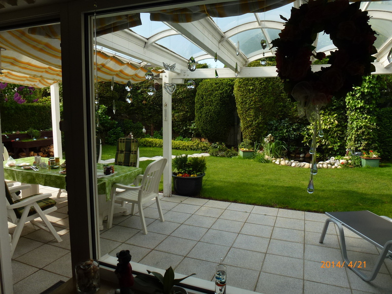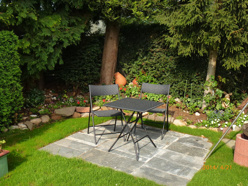 Mein Garten ist ein hübscher bunter Fleck Erde mit vielen Blumen und Düften, mit kleinen Tieren und einem Teich. Besonders eindrucksvoll erscheint mir mein Garten immer dann, wenn es wärmer wird, die Rosen sprießen, der Flieder seinen Duft verbreitet und die Beeren anfangen, reif zu werden. Dann genieße ich jede freie Minute, die ich in meinem wunderschönen Garten verbringen kann.